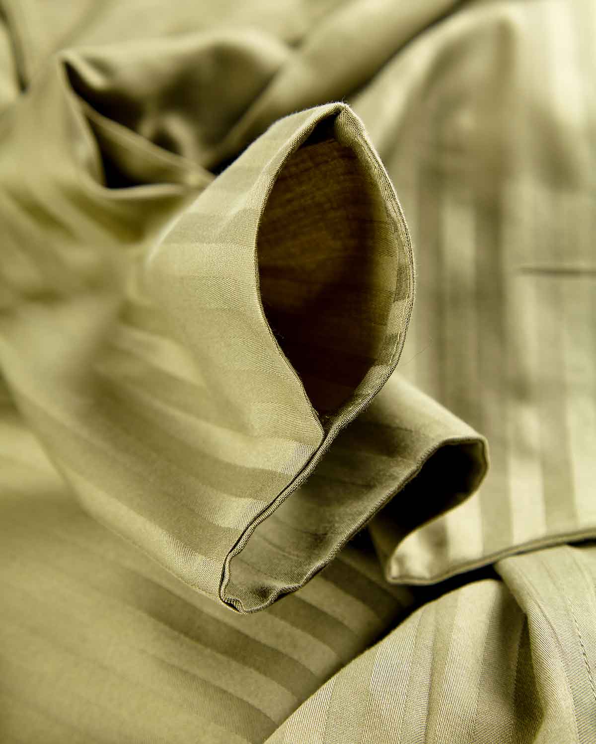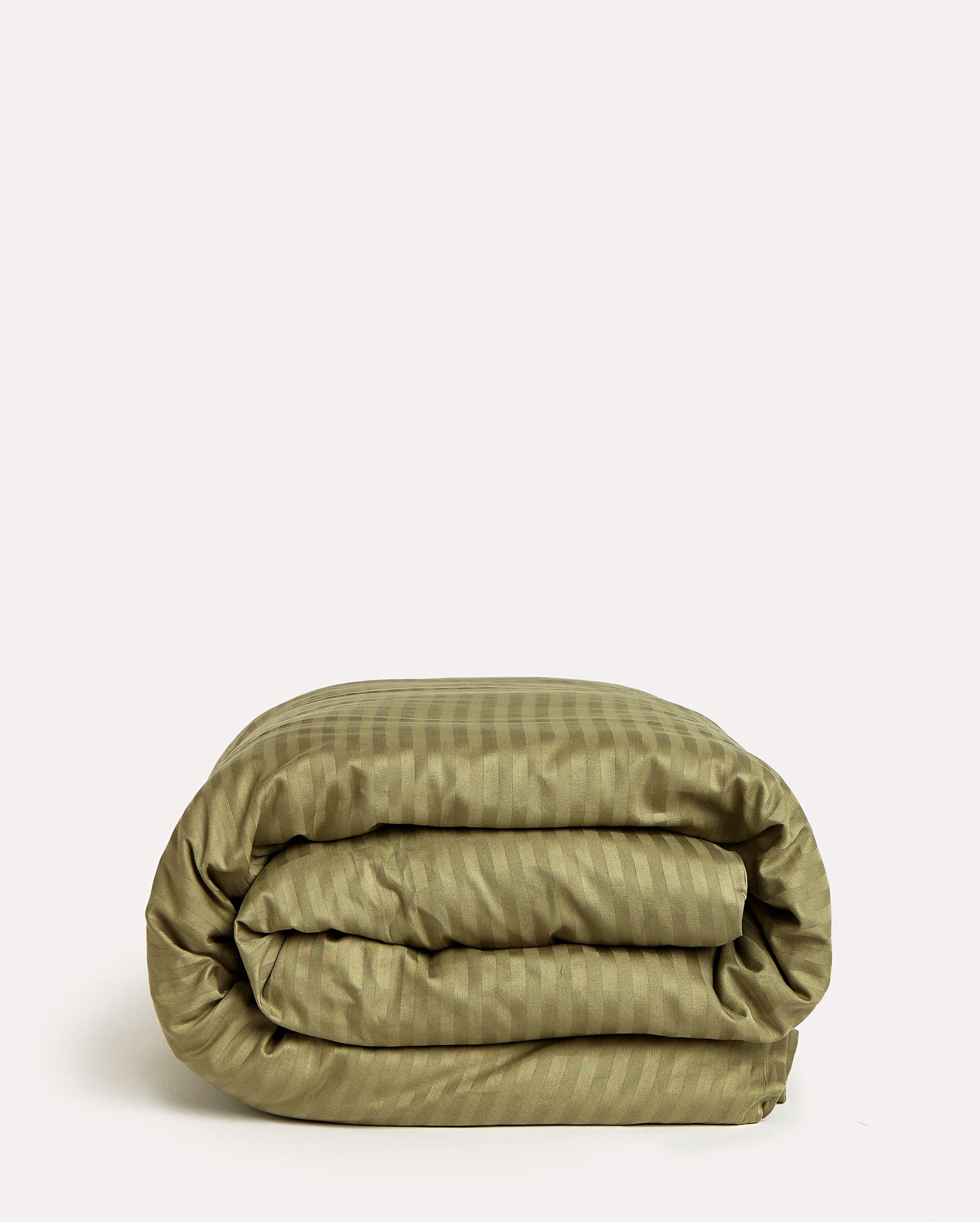 Sateen Stripe - Duvet Cover Set - Oil Green